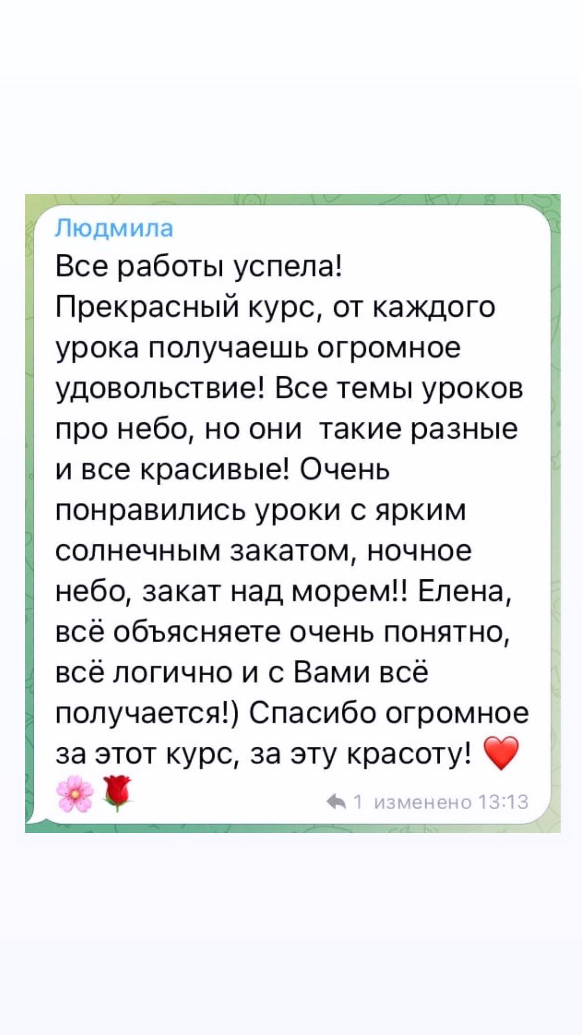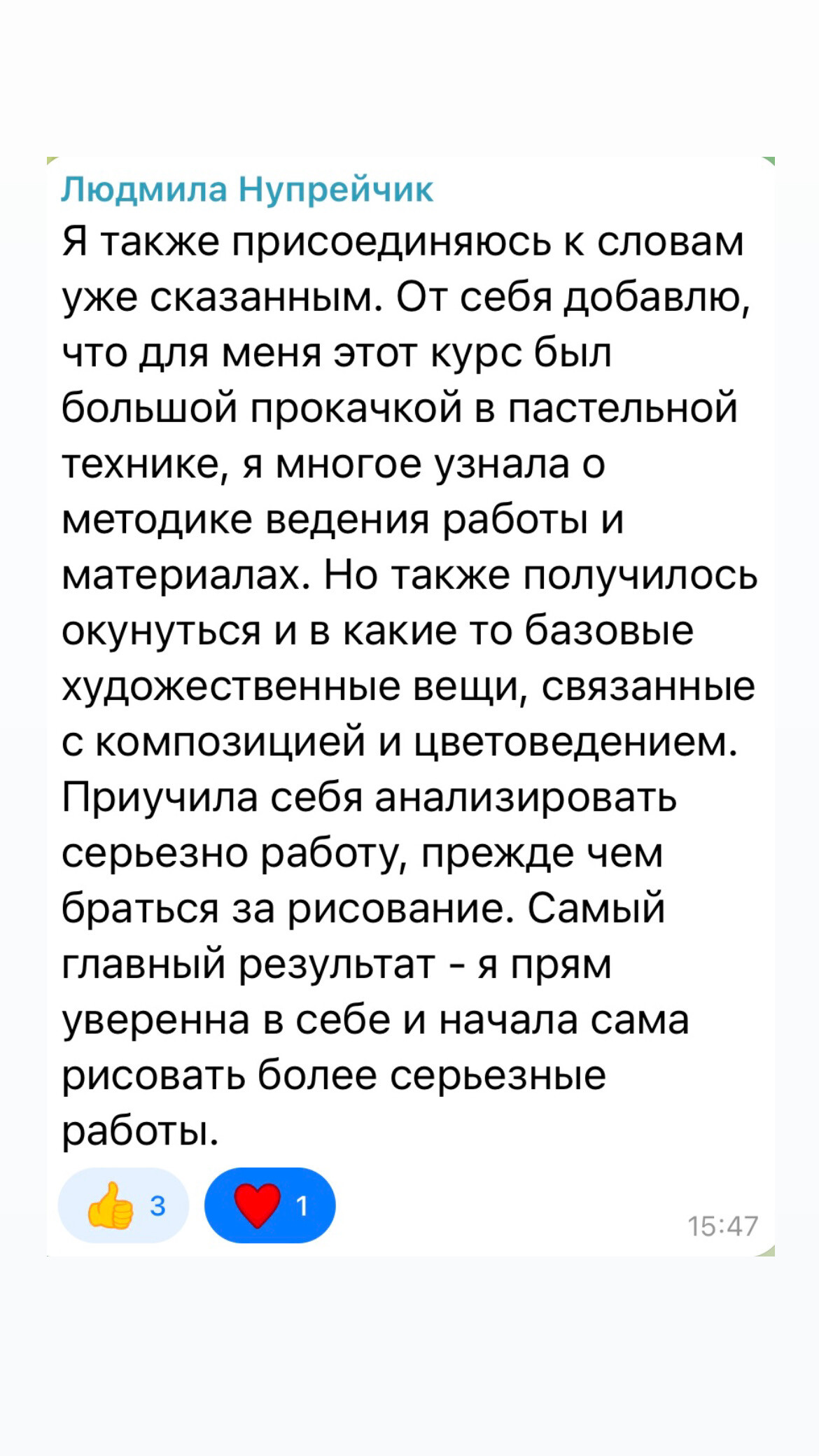 Самый важный результат для меня — это «влюбить» вас в пастель и вдохновить на самостоятельное творчество.