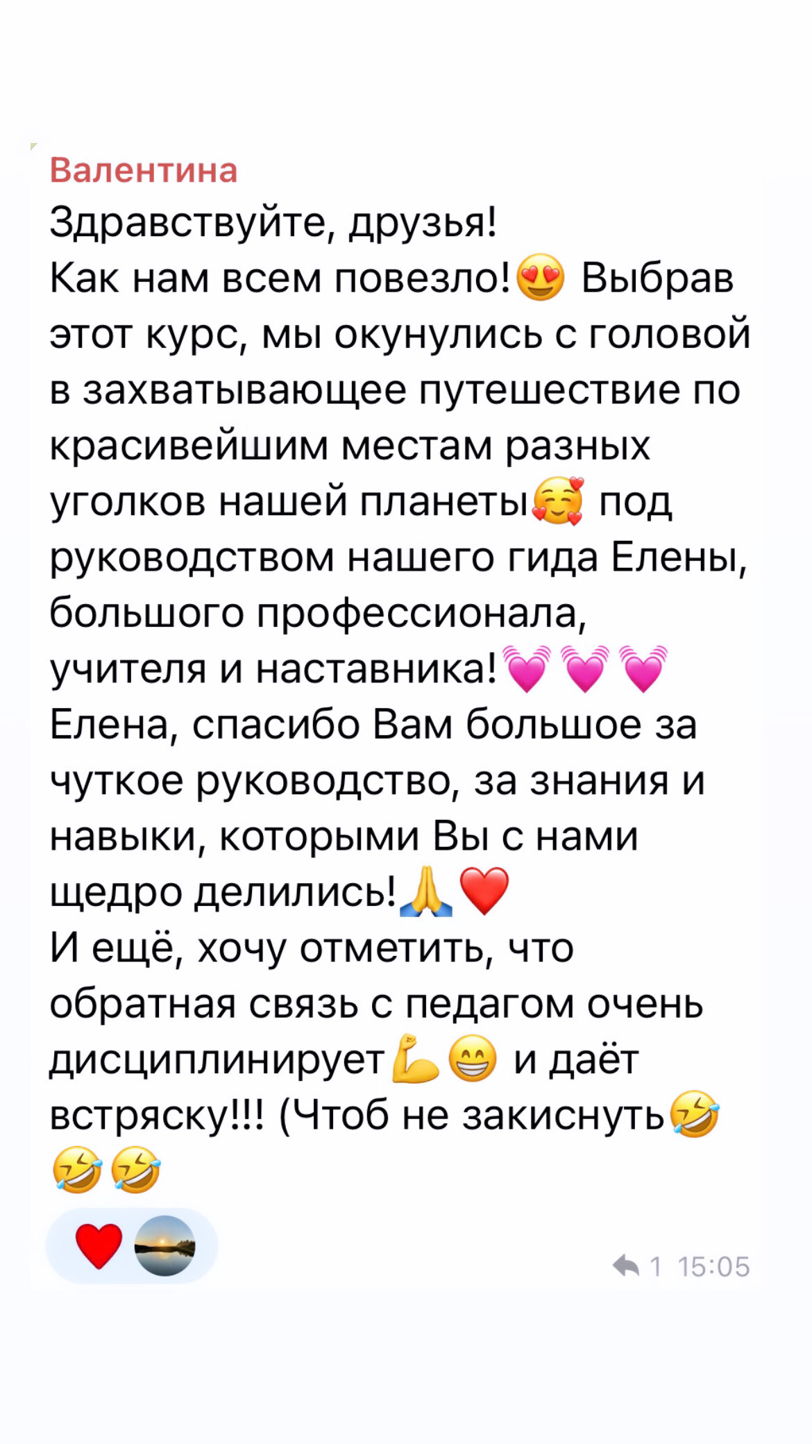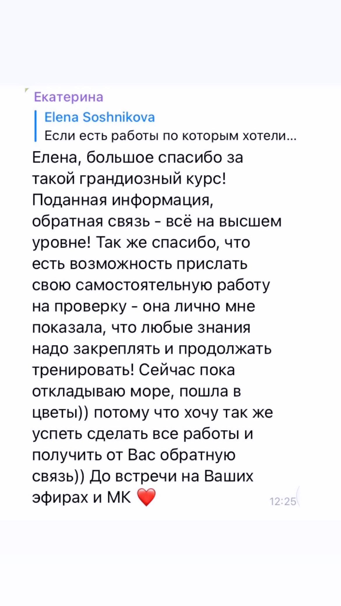 Ответы по вашим работам вы получаете на обучающей платформе в личном кабинете (только для тарифа с обратной связью)
